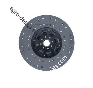 Диск 172.21.024 ведомый муфты главного сцепления с асбестовой накладкой однодисковой лепестковой корзины двигателя ЯМЗ-236,ЯМЗ-238 трактора Т-150,Т-151,Т-156,Т-17221,Т-17021,Т-157,Т150-05-09-25 производства Харьковского тракторного завода ХТЗ.На ведомом диске с двух сторон имеются фрикционные накладки, благодаря которым за счет силы трения ведомый диск принимает на себя вращения от ведущего диска. На ведомом диске имеются также специальные разрезы, чтобы избежать коробления диска в случае сильного нагрева, а также присутствует устройство, называемое гаситель крутильных колебаний. Ведомый диск сцепления – сложносоставная деталь. У него есть своя ступица, которая не имеет жесткой связи с диском. Ступица имеет внутренние шлицы для соединения со шлицами ведущего вала коробки передач, и она устанавливается внутри самого ведомого диска. На одной из сторон ведомого диска устанавливается гаситель крутильных колебаний. На гасителе и самом на ведомом диске заклепками закреплены фрикционные пластины. По обе стороны фланца ступицы и ведомого диска устанавливаются диски гасителя и маслоотражатели. Маслоотражатели, диски гасителя и фланец ступицы соединяются друг с другом заклепками.Таким образом, ведомый диск оказывается свободным и может поворачиваться на некоторый угол относительно ступицы. В дисках гасителя, кольце гасителя и ведомом диске устроены окна, в которые вставляются пружины с опорными пластинами. Пружины находятся в предварительно сжатом, но не до конца, состоянии. Вращение маховика передается на кожух сцепления, а с него на нажимной диск. С нажимного диска вращение за счет трения передается на фрикционные накладки и на стальной диск ведомого диска, далее через пружины гасителя крутильных колебаний на диски гасителя, далее на фланец ступицы, на ступицу и через шлицы на ведущий вал коробки передач. При резком изменении частоты вращения пружины гасителя сжимаются и за счет этого несколько уменьшаются крутильные колебания, что помогает избежать повреждения деталей коробки передач.☎+380954442877,☎+380636896755,✅agro-detals.com