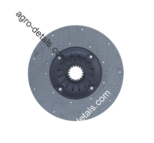 Диск 150.21.024-2 сцепления ведомый муфты главного сцепления двухдисковой корзины двигателя СМД-60, СМД-62, СМД-63, СМД-72 трактора Т-150, Т-151, Т-156, Т-17221, Т-17021, Т-157, Т150-05-09-25 производства Харьковского тракторного завода ХТЗ. На ведомом диске с двух сторон имеются фрикционные накладки, благодаря которым за счет силы трения ведомый диск принимает на себя вращения от ведущего диска. На ведомом диске имеются также специальные разрезы, чтобы избежать коробления диска в случае сильного нагрева, а также присутствует устройство, называемое гаситель крутильных колебаний. Ведомый диск сцепления – сложносоставная деталь. У него есть своя ступица, которая не имеет жесткой связи с диском. Ступица имеет внутренние шлицы для соединения со шлицами ведущего вала коробки передач, и она устанавливается внутри самого ведомого диска. На одной из сторон ведомого диска устанавливается гаситель крутильных колебаний. На гасителе и самом на ведомом диске заклепками закреплены фрикционные пластины. По обе стороны фланца ступицы и ведомого диска устанавливаются диски гасителя и маслоотражатели. Маслоотражатели, диски гасителя и фланец ступицы соединяются друг с другом заклепками.Таким образом, ведомый диск оказывается свободным и может поворачиваться на некоторый угол относительно ступицы. В дисках гасителя, кольце гасителя и ведомом диске устроены окна, в которые вставляются пружины с опорными пластинами. Пружины находятся в предварительно сжатом, но не до конца, состоянии. Вращение маховика передается на кожух сцепления, а с него на нажимной диск. С нажимного диска вращение за счет трения передается на фрикционные накладки и на стальной диск ведомого диска, далее через пружины гасителя крутильных колебаний на диски гасителя, далее на фланец ступицы, на ступицу и через шлицы на ведущий вал коробки передач. При резком изменении частоты вращения пружины гасителя сжимаются и за счет этого несколько уменьшаются крутильные колебания, что помогает избежать повреждения деталей коробки передач. ☎+380954442877,☎+380636896755,✅agro-detals.com