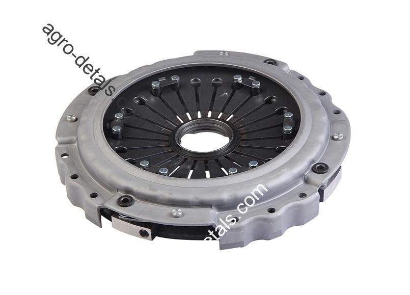 Диск сцепления 182.1601090 нажимной однодисковой лепестковой корзины главного сцепления двигателя ЯМЗ-236,ЯМЗ-238 трактора Т-150,Т-151,Т-156,Т-17221,Т-17021,Т150-05-09-25,ХТЗ-243К,ХТЗ-181 производства Харьковского тракторного завода ХТЗ.Лепестковая корзина сцепления ЯМЗ выполняет несколько функций: обеспечивает плавное трогание с места автомобиля благодаря постепенному наращиванию давления на поверхность трения диска (ведомого) со стороны ведущего; производит надежную передачу крутящего момента при движении коробке передач от двигателя; обеспечивает полное разъединение трансмиссии и двигателя при переключении передач и снижение уровня колебаний в трансмиссии; предохраняет от чрезмерных перегрузок трансмиссию и двигатель при резкой смене режима движения автомобиля. Ведущий нажимной диск сцепления с кожухом установлен на маховике двигателя и закреплен болтами (12 штук). Диск осуществляет передачу крутящего момента двигателя через стальной кожух от маховика к ведомому диску. Нажимной диск с кожухом соединен четырьмя пакетами пластин (по 4 штуки в каждом пакете), которые выполнены из пружинной стали. Один край пакета прикреплен к кожуху заклепкой, другой край прикручен специальным болтом к нажимному диску. Благодаря подобной конструкции обеспечивается стабильность центрирования ведущего диска по отношению к оси вращения маховика с коленвалом и сцепления, передача крутящего момента к диску от кожуха, а также возможность перемещения нажимного диска вдоль оси вращения, что достигается за счет изгиба пакетов пластин. При включенном сцеплении пакеты пластин находятся в изогнутом состоянии в сторону ведущего диска, поэтому в момент выключения сцепления они стремятся выпрямиться, после чего отводят диск от ведомого диска и маховика. ☎+380954442877,☎+380636896755,✅agro-detal.com ⚙️| ⚡доставка ✈⏩