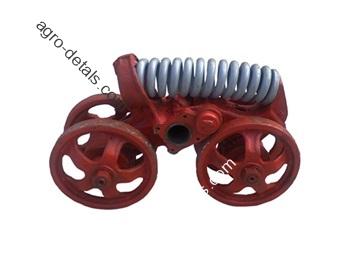 Каретка 85.31.002-1 подвески передняя и левая задняя правая в сборе гусеничного трактора ДТ-75, ДТ-75Н, ДТ-75М, ДТ-75МВ, ДТ-75НБ, ДТ-75РМ, ДТ-75Б производства Волгоградский тракторный завод ВгТЗ. Каретка ДТ-75 представляет собой тележку, состоящую их двух балансиров, внешнего и внутреннего. Балансиры шарнирно соединяются друг с другом при помощи оси качания. На нижних концах балансиров укреплены попарно опорные катки. А вверху балансиры распираются цилиндрической пружиной-рессорой. Внешний балансир ДТ-75 свободно насаживает на цапфу поперечного бруса рамы. Каретка подвески ДТ-75 удерживается от смещения во внешнюю сторону трактора на цапфе. От перемещения по цапфе внутрь трактора каретка ДТ-75 удерживается крышкой, прикрепленной к внешнему балансиру. Для предотвращения вытекания смазки и ее загрязнения к внешнему балансиру крепится корпус уплотнения. Неподвижность соединения оси качания с внутренним балансиром обеспечивается сборным клином, состоящим из разрезной втулки, круглого конического клина с резьбовым хвостовиком и глухой гайкой. В нижней части балансиры имеют головку, в расточку которой на роликовых конических подшипниках устанавливается ось катков. На оси напрессовываются стальные опорные катки, закрепленные на оси гайкой и призматической шпонкой. Вытекание смазки и попадание в нее посторонних примесей предотвращается уплотнением на ступице опорного катка. Для защиты от грязи узел защищен дополнительным лабиринтом. ☎+380954442877,☎+380636896755,✅agro-detal.com ⚙️| ⚡доставка ✈⏩
