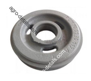 Шкив натяжной РСМ-10.01.30.112А механизма привода домолота D = 140 мм, сечение ремня У (Б) зерноуборочного комбайна Дон-1500, Акрос, Полесье производства Ростсельмаш. Шкив натяжной привода домолота или кондиционера представляет собой отливку формы диска, на ободе которой проточена канавка под ремень. Ступица шкива имеет цилиндрическое внутреннее отверстие для установки шарикоподшипника 180204. Для облегчения веса на диске шкива имеются три продолговатые отверстия. Входит в состав привода кондиционера и ротора домолота комбайна Дон-1500 производства Ростовского завода сельхозмашин. Является промежуточным элементом клиноременной передачи и служит для натяжения ремня и передачи вращения шкиву на валу домолачивающего устройства (кондиционера). ☎+380954442877,☎+380636896755,✅agro-detal.com ⚙️| ⚡доставка ✈⏩