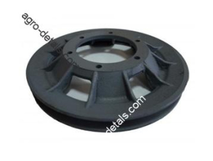 Шкив РСМ-10.14.00.001Б вала отбойного битера (под измельчитель) зерноуборочного комбайна Дон-1500, Дон-1500Б, Акрос, Полесье производства Ростсельмаш. Шкив привода заднего контрпривода представляет собой отливку, на ободе которой проточена канавка трапецеидального сечения. Фланец с шестью крепежными отверстиями смещен в осевом направлении относительно венца обода. Для облегчения веса обод с фланцем соединяется шестью отлитыми пластинами с ребрами жесткости. Используется для комбайна с измельчителем. Совместно с 6-и ручейный шкивом РСМ-10.14.00.520 собирается в 7и ручейный шкив РСМ-10.14.00.530. Входит в состав отбойного битера молотилки комбайна Дон-1500 производства Ростовского завода сельхозмашин. Устанавливается на правом конце вала отбойного битера. Служит для передачи вращения приводу заднего контрпривода. ☎+380954442877,☎+380636896755,✅agro-detal.com ⚙️| ⚡доставка ✈⏩