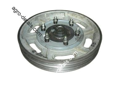 Шкив РСМ-10.27.02.010 привода механизма верхнего вала наклонной камеры (4-х ручьевой. D=560 мм) в сборе зерноуборочного комбайна Дон-1500, Дон-1500Б, Акрос, Полесье производства Ростсельмаш. Шкив привода верхнего вала наклонной камеры в сборе представляет собой шкив с предохранительной фрикционной муфтой. Сборочный узел состоит из шкива (4-ручьевой, d=560мм), щитка, диска нажимного, накладки, ступицы трения, кольца, обоймы, масленки и метизов. Входит в состав наклонной камеры жатки комбайна Дон-1500 производства Ростовского завода сельхозмашин. Устанавливаются на верхнем валу наклонной камеры. Служит для передачи вращения верхнему валу с приводными звездочками. ☎+380954442877,☎+380636896755,✅agro-detal.com ⚙️| ⚡доставка ✈⏩