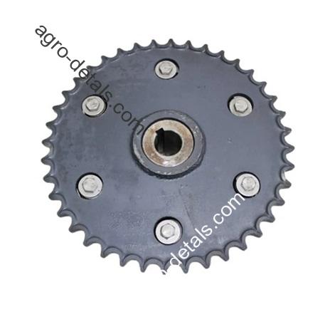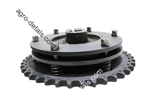 Механизм 3518050-12040ВТ (устройство) предохранительное шнека жатки зерноуборочного комбайна Дон-1500, Дон-1500Б, Нива СК-5М, Акрос, Полесье производства Ростсельмаш. Механизм 3518050-12040ВТ (устройство) предохранительное шнека жатки представляет собой сборочную единицу, состоящую из приводной звездочки, накладки фрикционной, диска ведущего, диска нажимного, масленки, защитного кожуха, пружин и крепежных деталей. Механизм предохранительный устанавливается на фланцевом вале шнека жатки. Механизм предохранительный шнека жатки в сборе входит в состав механизма привода рабочих органов и шнека жатки комбайна ДОН-1500 производства Ростовского завода сельхозмашин. Механизм предохранительный шнека жатки защищает шнек жатки от поломок и деформации при застрявании хлебной массы. Приводная звездочка передает крутящий момент через фрикционные диски ведущему диску, передающему вращение на вал шнека. При повышении нагрузки приводная звездочка пробуксовывает относительно ведущего диска. При этом шнек останавливается. ☎+380954442877,☎+380636896755,✅agro-detal.com ⚙️| ⚡доставка ✈⏩
