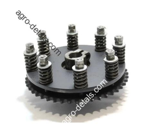 Устройство предохранительное 3518050-11310 в сборе механизма мотовила жатки ЖЗЛ 02.550 зерноуборочного комбайна Дон-1500, Дон-1500Б, Нива СК-5М, Акрос, Полесье производства Ростсельмаш. Механизм предохранительный ЖЗЛ 02.550 мотовила в сборе представляет собой сборочную единицу, состоящую из звездочки z=50 в сборе, накладки фрикционной, диска ведущего, диска нажимного, масленки, пружин и крепежных деталей. Механизм предохранительный мотовила смонтирован на левой цапфе мотовила. Механизм предохранительный мотовила в сборе входит в состав мотовила захватом 6 м, 7 м и 8.6 м жатки комбайна ДОН-1500 производства Ростовского завода сельхозмашин. Механизм предохранительный мотовила в сборе является предохранительной фрикционной муфтой, рассчитанной на передачу вращающего момента 60 н.м. Механизм предохранительный служит для предохранения от выхода из строя деталей и узлов мотовила при столкновении граблин с посторонними предметами. ☎+380954442877,☎+380636896755,✅agro-detal.com ⚙️| ⚡доставка ✈⏩