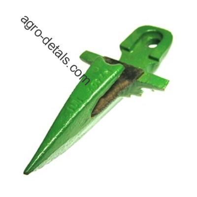 Палец Р.230.20.001 одинарный Р230.30.000 механизма режущего аппарата жатки зерноуборочного комбайна Дон-1500, Дон-1500Б, Нива СК-5М, Акрос, Полесье производства Ростсельмаш. Палец одинарный режущего аппарата Р230.30.000 представляет собой сборную, чугунную, литую деталь, внутри которой приклепана противорежущая пластина, в каталоге именуемая вкладыш. Наряду с двойными пальцами является одной из основных деталей в работе режущего аппарата. Расположены по краям режущего аппарата и по этому идут одинарными. Внутри пальцев в горизонтально поперечной плоскости ходит нож с сегментами Н.066.02, встречаясь с вкладышами пальца (противорезами) Н.066.56 создается эффект ножниц и стебли срезаются. Всего на одном комбайне в режущем аппарате таких пальцев используется 48шт. или 60шт. ☎+380954442877,☎+380636896755,✅agro-detal.com ⚙️| ⚡доставка ✈⏩