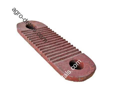 Рейка Н069.01.014 шейки шатуна механизма режущего аппарата ЖКС 01.203 зерноуборочного комбайна Нива СК-5М, Нива СК-5А, Нива СК-5АМ, Нива СК-5М-1, Нива СКП-5М-1, Нива СКК-5, Нива-эффект, Акрос. Рейка шейки шатуна Н.069.01.014 представляет собой плоскую металлическую планку с двумя отверстиями для крепления и насечками практически по всей длине. Устанавливается эта рейка в приводе режущего аппарата комбайна нива ск-5м между щекой шатуна и деревянным шатуном. За счет насечек обеспечивает хорошее сцепление между щекой и шатуном. На одном комбайне устанавливается в количестве 2 шт. ☎+380954442877,☎+380636896755,✅agro-detal.com ⚙️| ⚡доставка ✈⏩