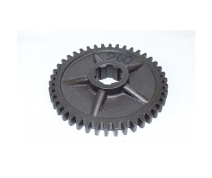 Шестерня А25.37.260 ведущая дополнительных передач Z=42 коробки перемены передач КПП колесного трактора Т-25,Т-25А. Шестерня А25.37.260 расположена на шлицах в передней части вала дополнительных передач 25.37.210 и находиться в постоянном зацеплении с ведущей шестерней дополнительных пониженных передач А25.37.259. От осевых перемещений она зафиксирована упорным кольцом и стопорным пружинным кольцом. Изготовлена из высокопрочной стали способной переносить большие механические нагрузки в процессе работы коробки на тракторе. Применяется на всех серийных моделях тракторов выпускаемых заводом изготовителем ОАО "Владимирский моторо-тракторный завод" ВМТЗ.