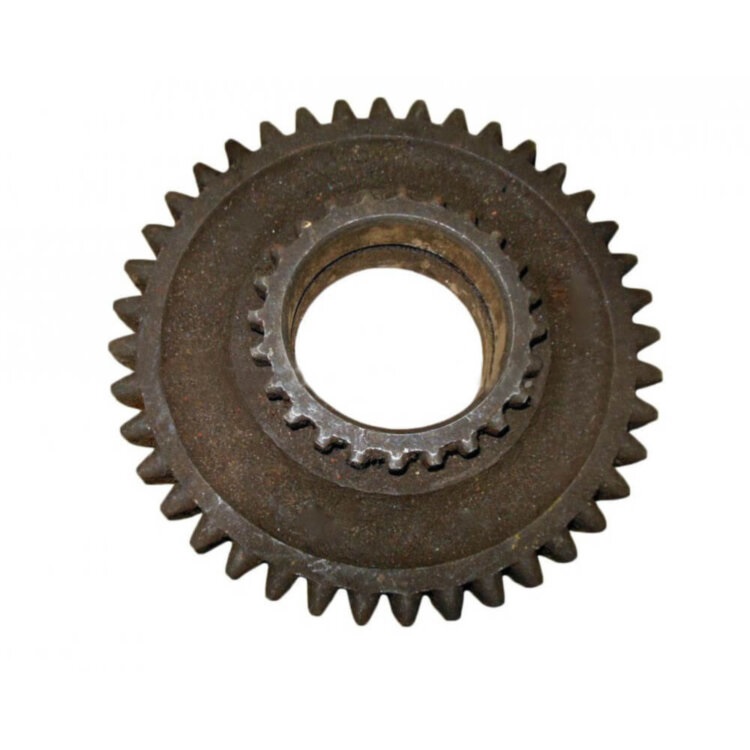Шестерня Т50-4205017 ведомая вала отбора мощности ВОМ независимый и синхронной передачи,коробки колесного трактора Т 40, Т 40М, Т 40АМ, Т 40А, ЛТЗ 55 производства ОАО "Липецкий тракторный завод". Шестерня ведомая независимого привода ВОМ представляет собой ступенчатую стальную деталь цилиндрической формы. Шестерня конструктивно состоит из зубчатого венца на котором нарезаны зубья z=40, наружной поверхности ступицы на которой нарезаны зубья шлицевого соединения z=24. На внутреннем отверстии нарезаны зубья шлицевого соединения z=14. Шестерня посажена на шлицы синхронного вала Т25-4205042-Г. Шестерня ведомая независимого привода ВОМ входит в состав вала отбора мощности дополнительного оборудования трактора Т 40 производства ЛТЗ. Наружная обойма муфты переключения входит в зацепление со шлицами на ступице шестерни ведомой и происходит включение независимого привода ВОМ трактора. Служит для передачи вращательного движения с постоянным числом оборотов независимо от скорости движения трактора.Изготовлена из высокопрочной стали Сталь 20ХН3А ГОСТ 4543-71 способной переносить большие механические нагрузки в процессе работы вала отбора мощности ВОМ на тракторе.Устанавливается на всех серийных моделях выпускаемых заводом изготовителем и его аналогах.