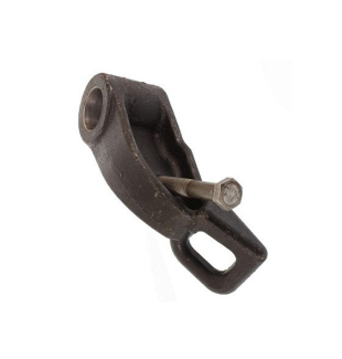 Кронштейн Т25-4628223 блокировки механизма задней навески левый колесного трактора Т 40, Т 40М, Т 40АМ, Т 40А, ЛТЗ 55 производства ОАО "Липецкий тракторный завод". Кронштейн блокировки правый представляет собой литую стальную деталь сложной изогнутой формы, с гладким цилиндрическим отверстием для установки кронштейна на ось продольных тяг Т25-4628354 и овальное отверстие для соединения с серьгой тяги блокировки. В кронштейне блокировки имеется резьбовое отверстие для установки упорного болта Т25-4628539-А1. Кронштейн блокировки правый входит в состав устройства навесного дополнительного оборудования трактора Т 40 производства ЛТЗ. Совместно с тягами блокировки служит для ограничения поперечных перемещений сельскохозяйственных орудий при переездах и при работе. Изготовлен из высокопрочной стали 45 ГОСТ 8731-87 способной переносить большие механические нагрузки в процессе работы механизма задней навески трактора. Устанавливается на всех серийных моделях выпускаемых заводом изготовителем и его аналогах.